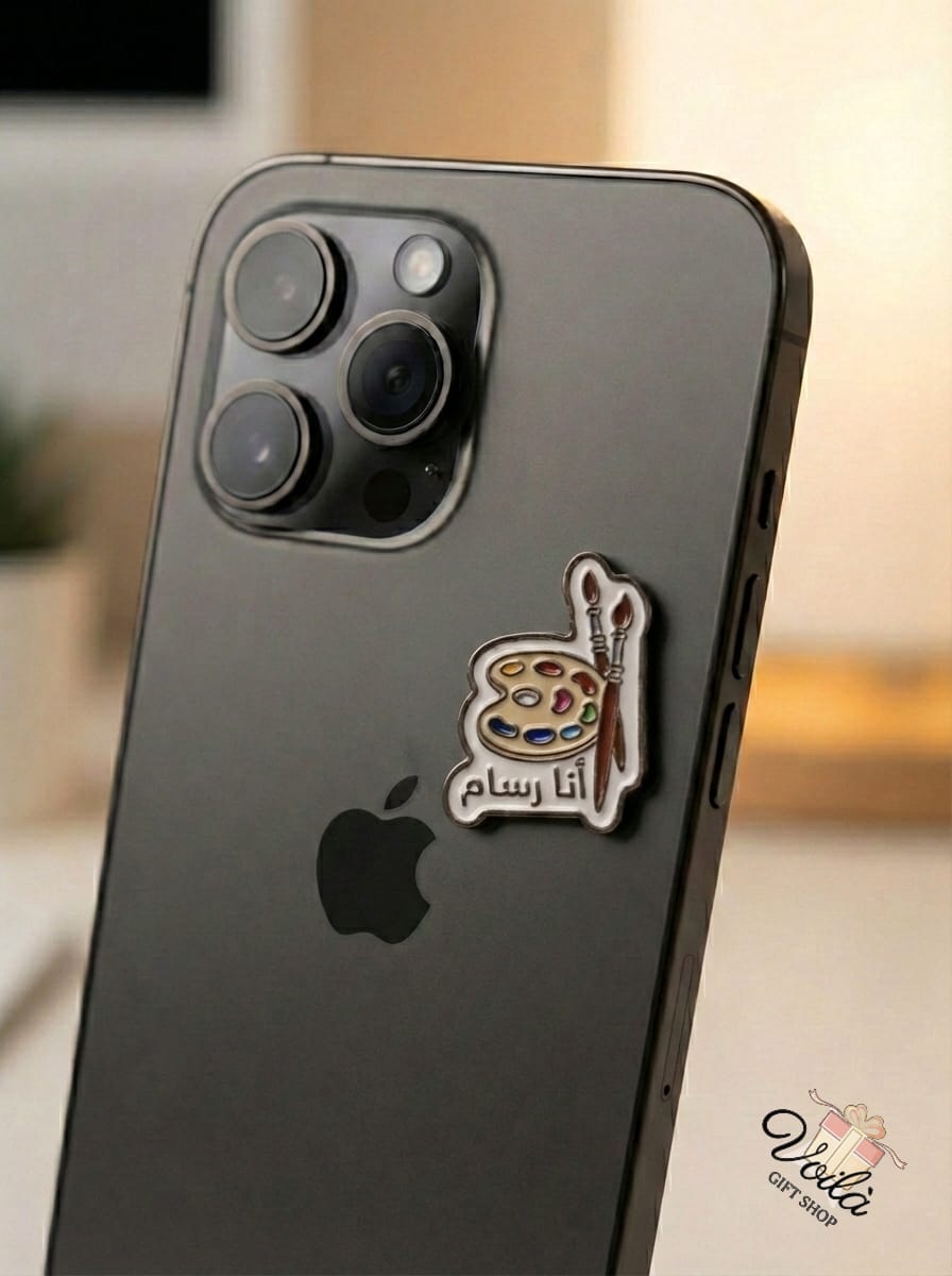 للمبدعين، والحالمين، والمبتكرين. ملصق "أنا رسام" المصنوع من المينا هو احتفاء بالفنان الكامن في داخلك. يتميز بألوان زاهية وعبارة "أنا فنان" مكتوبة بخط عربي جميل، هذا الإكسسوار هو الطريقة الأمثل للتعبير عن شغفك - سواءً على ملابسك أو هاتفك.